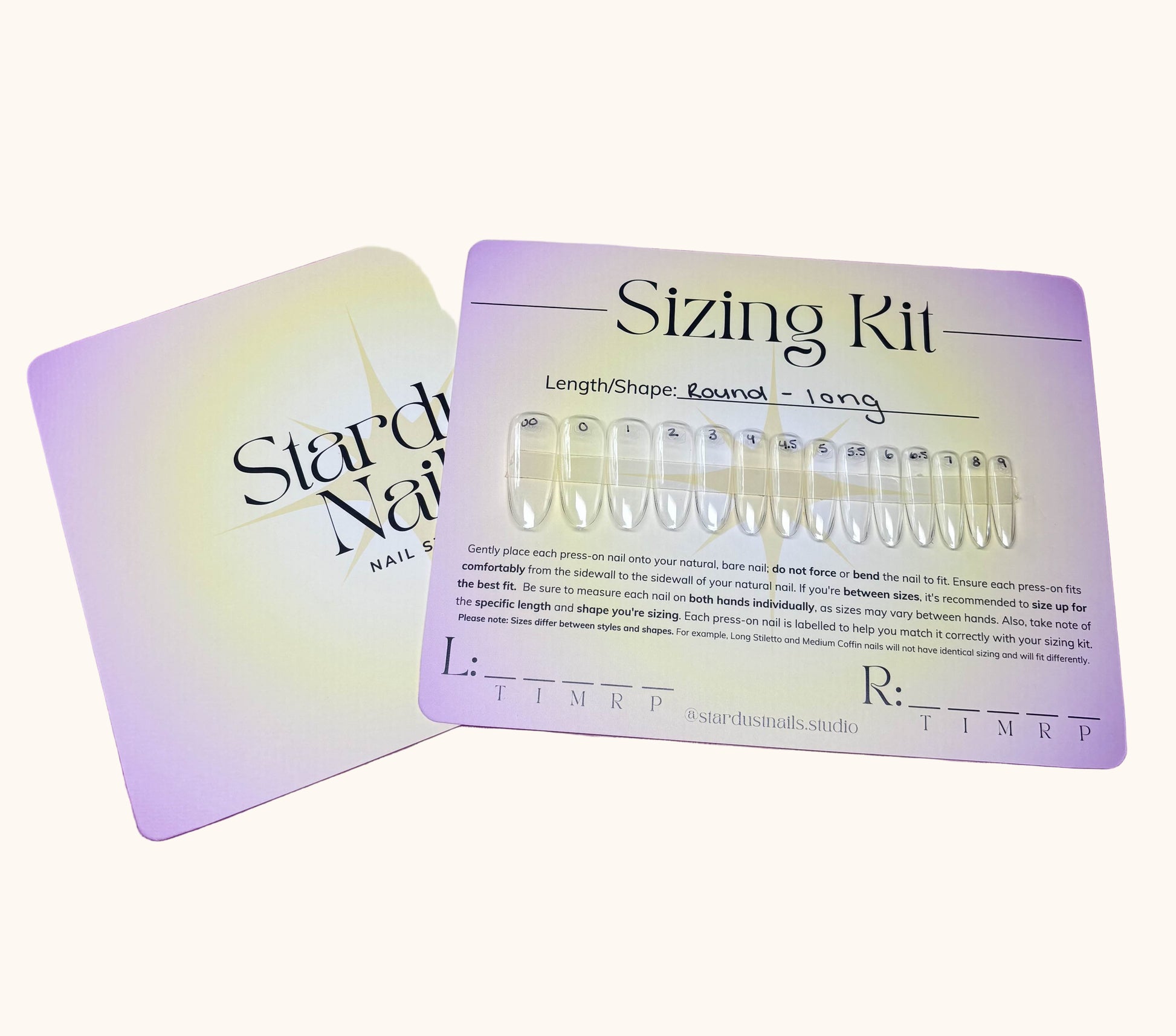 Simply try on the tips, note down your numbers for each finger, and you’ll be ready to order custom sets!